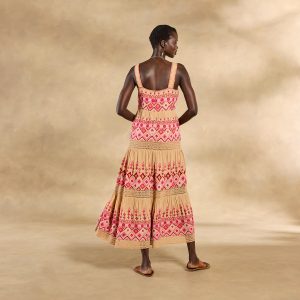 From spring days through summer nights and beyond. you’ll reach for our Garden Sunset Dress again and again! Sundown shades of pink. coral and yellow brighten a neutral background—with intricate all-over embroidery. lace insets throughout. decorative strap stitching and a center back zipper. Viscose/cotton/poly. Hand wash. Imported. Exclusive. Sizes XXS (00). XS (0–2). S (4–6). M (8–10). L (12–14). XL (16–18). Approx. 49.5l.