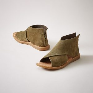 Slip into foot-cradling comfort with the brilliant. crisscrossing design of these soft. wide strap. leather sandals by B?rn?. Extra comfortable with padded insoles. back zippers and flexible soles. Imported. Whole sizes 6-11. 1/2 heel.