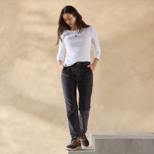 Easy. medium wash straight leg pants. One button front and zip fly. Four pockets. Cotton/spandex. Machine wash. Imported. Sundance exclusive. Sizes 24?C32. 27 inseam; 11 1/2 rise; 14 3/4 leg opening