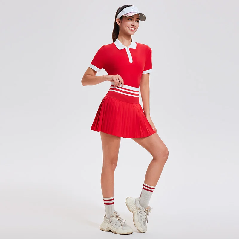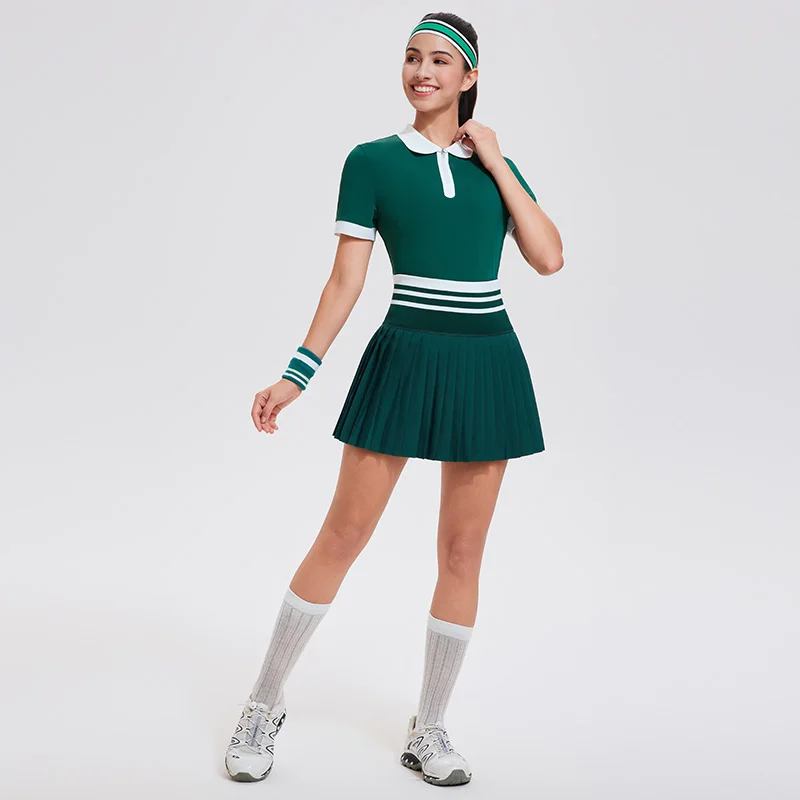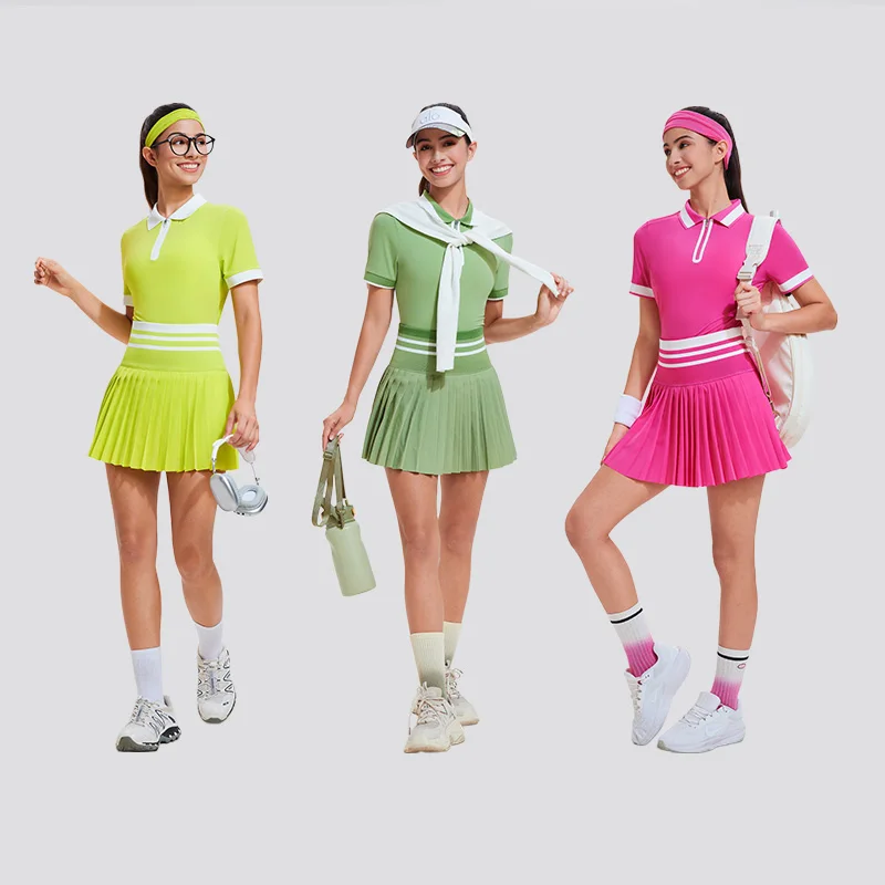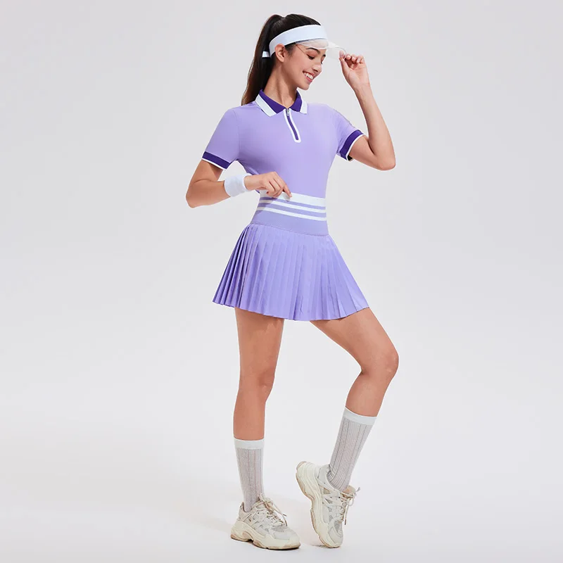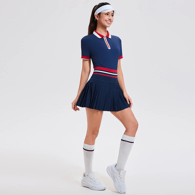 Summer Outdoor Leisure 2pcs Women Gym Clothes Fitness Breathable Golf Tennis Polo T-shirt Pleated Skirts Yoga Set |