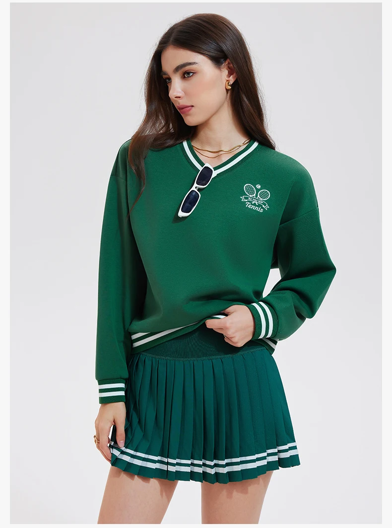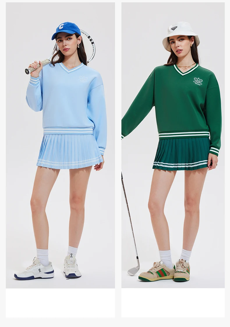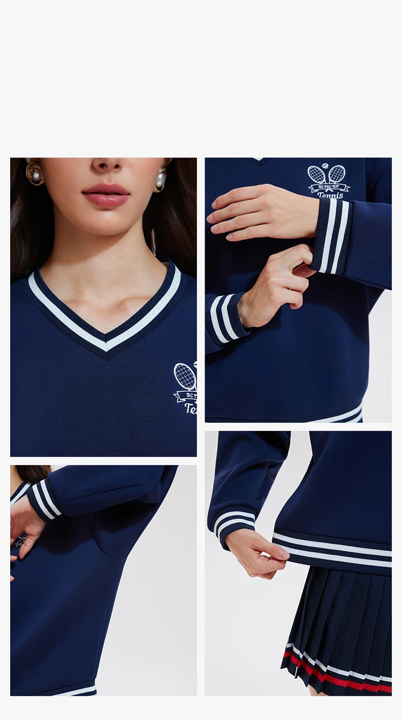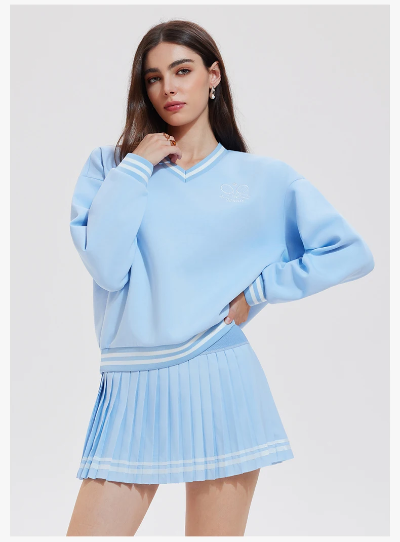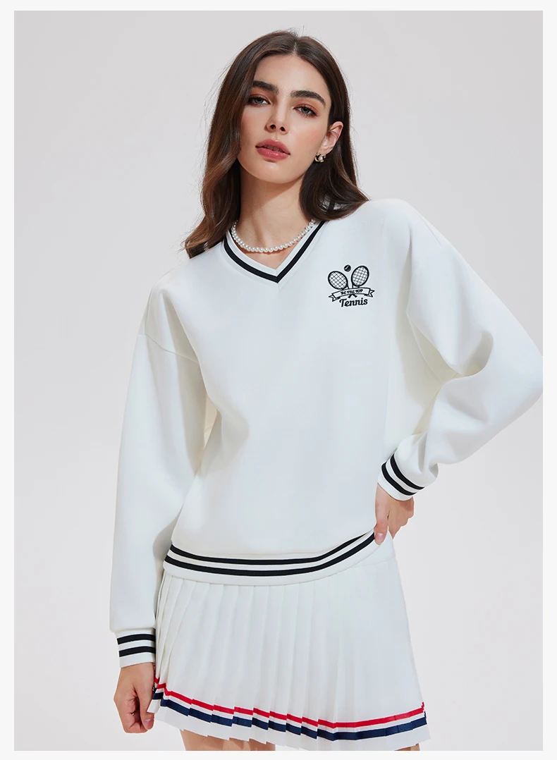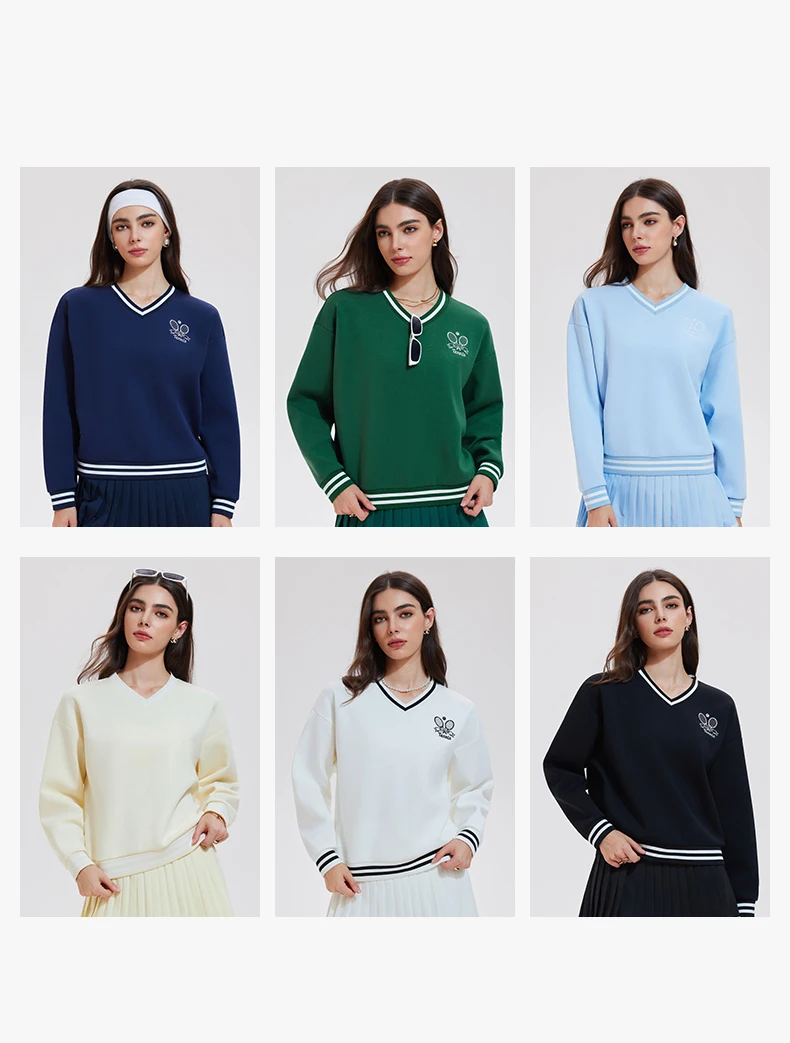 New Custom Unisex Loose Fit Cotton Polyester Pullover Oversized Long Sleeve V Neck Knitwear Sports Tennis Pullover Sweatshirt